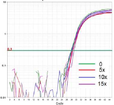 測定條件:將新配制的預(yù)混料再冷凍-解凍循環(huán)處理15次,并在5、10和15個(gè)循環(huán)處理后對樣品進(jìn)行PCR測試。 即使經(jīng)過15次的凍融循環(huán)也未觀察到酶活性的損失。 因此,一管RT-PCRMasterMix可以在20攝氏度下保存,并解凍15次以備常規(guī)使用。