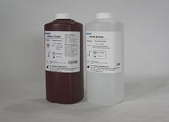 瑞式染色法是一種改良的羅曼諾斯染色法,用于對(duì)血液中的細(xì)胞成分進(jìn)行差異染色。當(dāng)血細(xì)胞細(xì)胞膜被該種染色法處理后,包細(xì)胞細(xì)胞核和細(xì)胞質(zhì)被染成為特征性的藍(lán)色或粉色。瑞式染色的純化染料消除了染色的不一致,并產(chǎn)生批次間可重復(fù)的顯色反應(yīng)。瑞式染色試劑盒用于自動(dòng)染色機(jī),型號(hào)AT-2000H,AT-3004,也可用于手工染色。