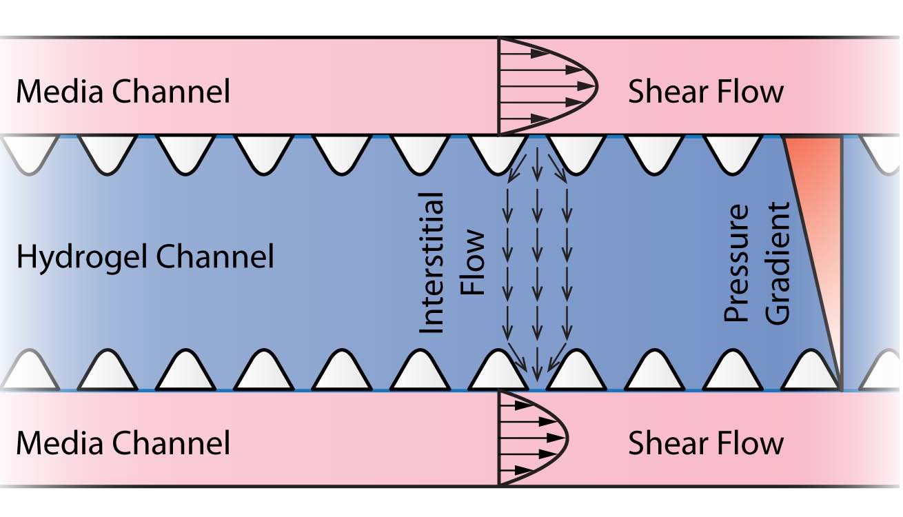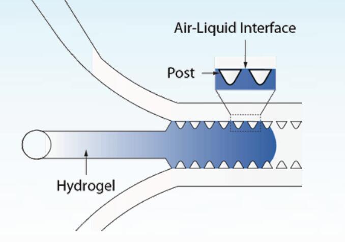 水凝膠貫穿在整個(gè)AIM芯片的間隙中,流體及化學(xué)物濃度梯度都可以被控制和調(diào)節(jié)。
