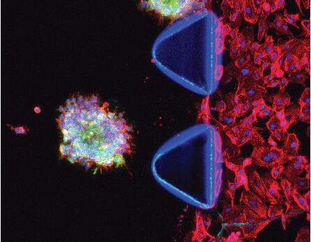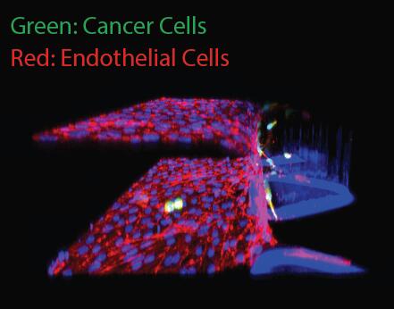 (2)內(nèi)滲:腫瘤細(xì)胞通過內(nèi)滲轉(zhuǎn)移進(jìn)入循環(huán)系統(tǒng)是癌擴(kuò)散至關(guān)重要的一步。AIM芯片可以在接近于腫瘤微環(huán)境的情況下創(chuàng)建內(nèi)皮單層,然后就此作為癌癥細(xì)胞內(nèi)滲的模型。